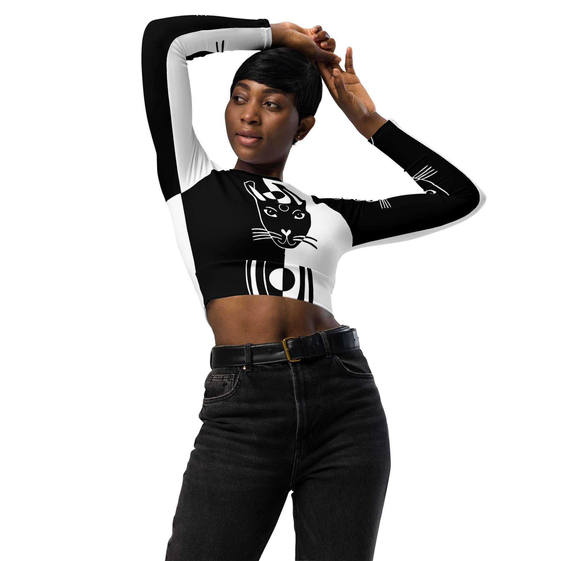 Wächter der Klarheit. Enges, langärmliges, bauchfreies Oberteil mit Negativ/Positiv Hasen als Stoffdesign.