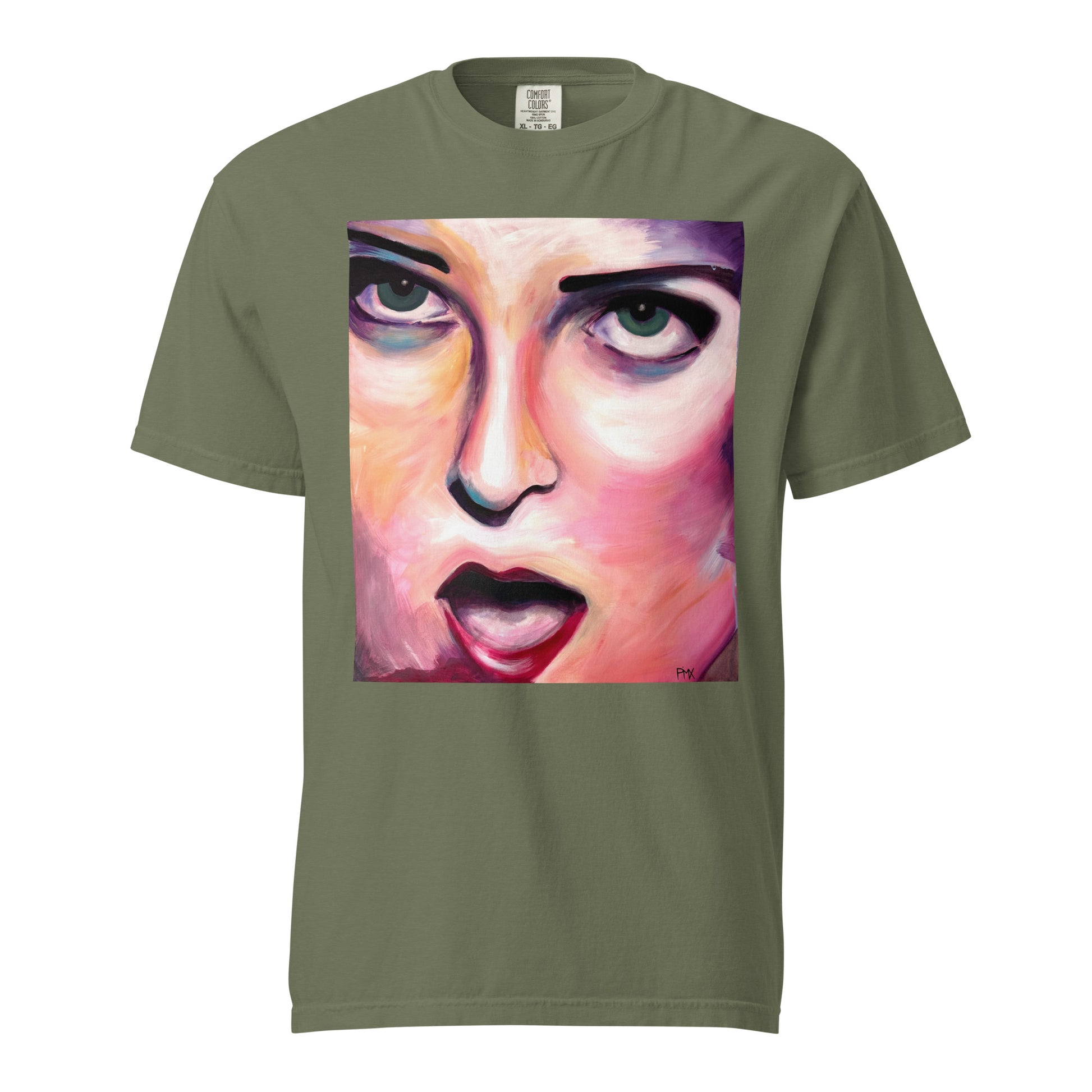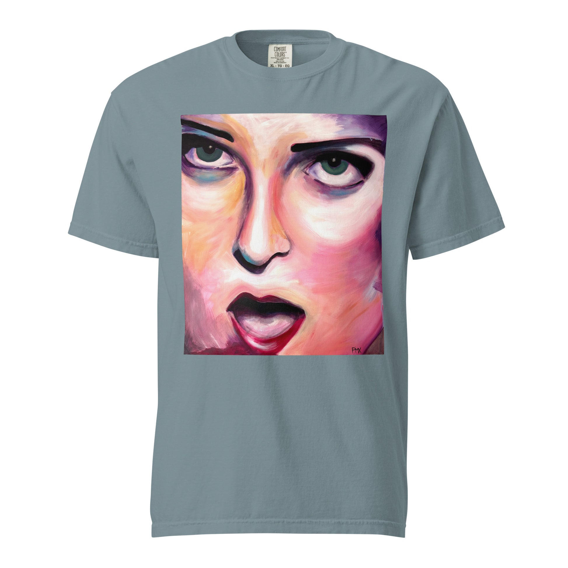 Shirt mit schauendem Gesicht - Acrylmalerei © Pima. Kunst zum Tragen.