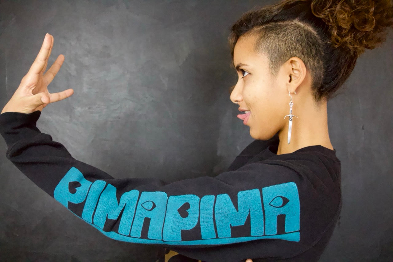 PIMAMIP UNIKAT BLUE - Handbedruckter Sweater